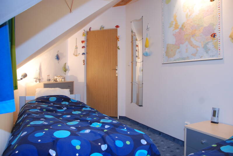 Slaapkamer 3: twee éénpersoons bedden, commode