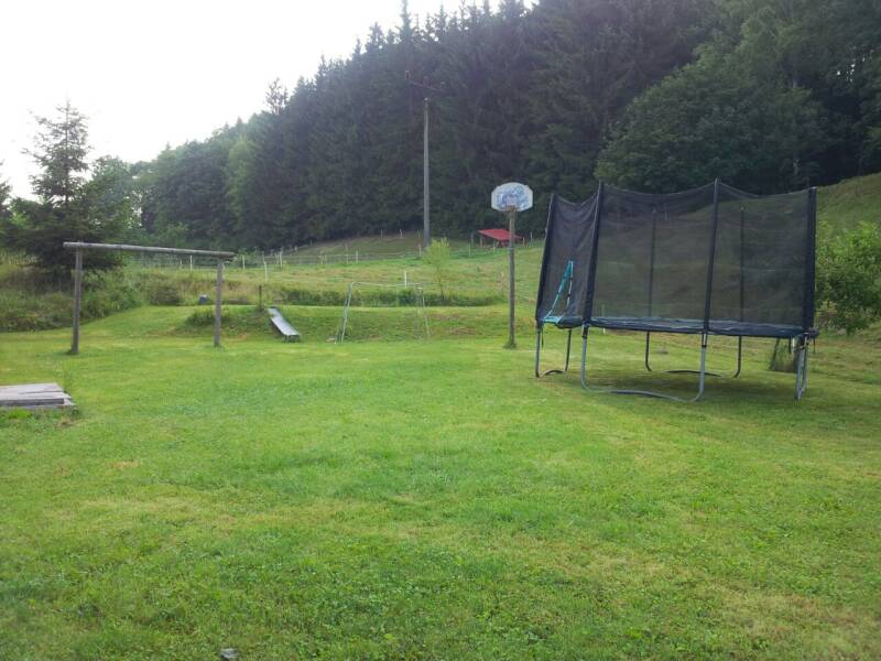 Bij het terras bevind zich de bbq. Verder is er een grote trampoline, een kinderspeelhuisje, zandbakje, voetbaldoel en basketbalbord. Ook zijn er een aantal kinderfietsjes en skelters.