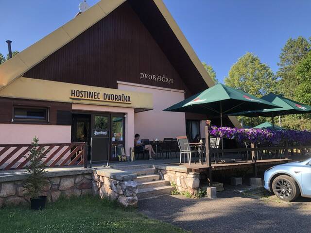 Hostinec Dvoracka: Restaurant met terras en speeltuintje op ca 21 km van het huis in Trutnov. Rustig gelegen buiten de bebouwing van Trutnov.